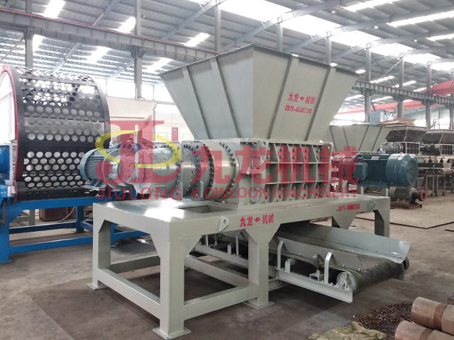 物料進(jìn)入塑膠撕碎機(jī)后通過外部雙軸電機(jī)進(jìn)行動(dòng)力輸出帶動(dòng)減速機(jī),減速機(jī)直連帶動(dòng)內(nèi)部雙排刀軸旋轉(zhuǎn)對(duì)物料進(jìn)行剪切、撕裂和擠壓達(dá)到減小物料尺寸,物料受到交錯(cuò)轉(zhuǎn)動(dòng)的高硬度實(shí)用材料制成的刀具撕咬和剪拉而被劈裂、破碎和粉碎成低于設(shè)定尺寸后從下料口出排除至下輸送機(jī)。在撕碎過程中如若遇到難易破碎的物料或者韌性較大的物料時(shí)會(huì)在自動(dòng)控制系統(tǒng)的作用下自動(dòng)反轉(zhuǎn),并多次正反轉(zhuǎn),直至物料被破碎排出。